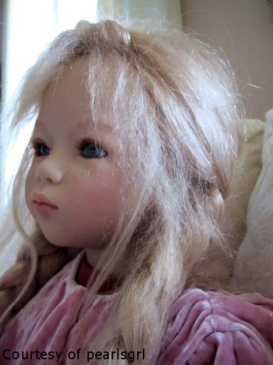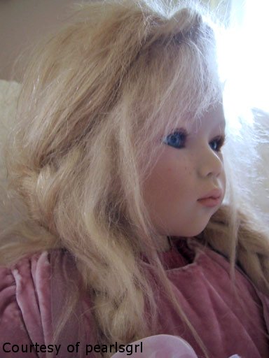 Blonde mohair and human hair, semi hand-knotted