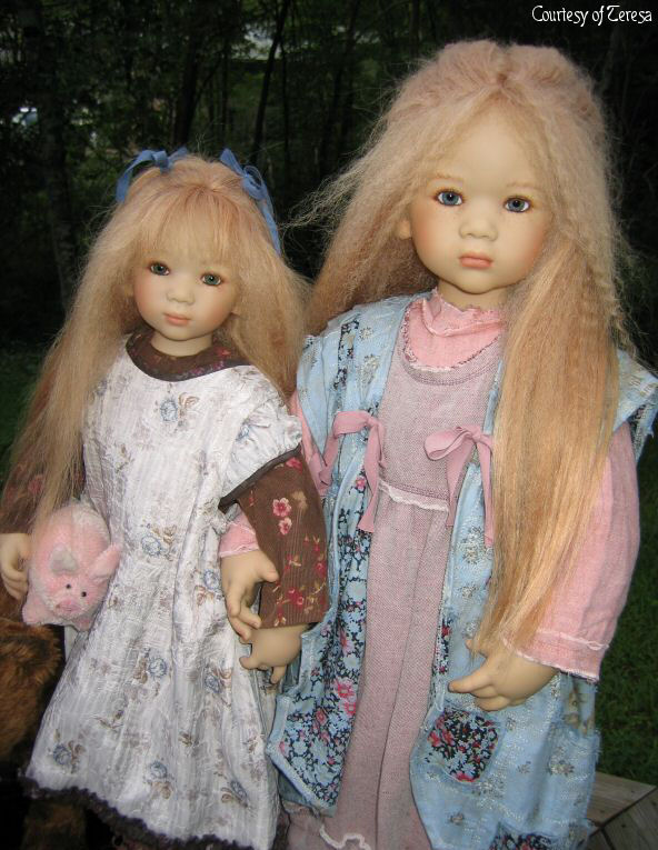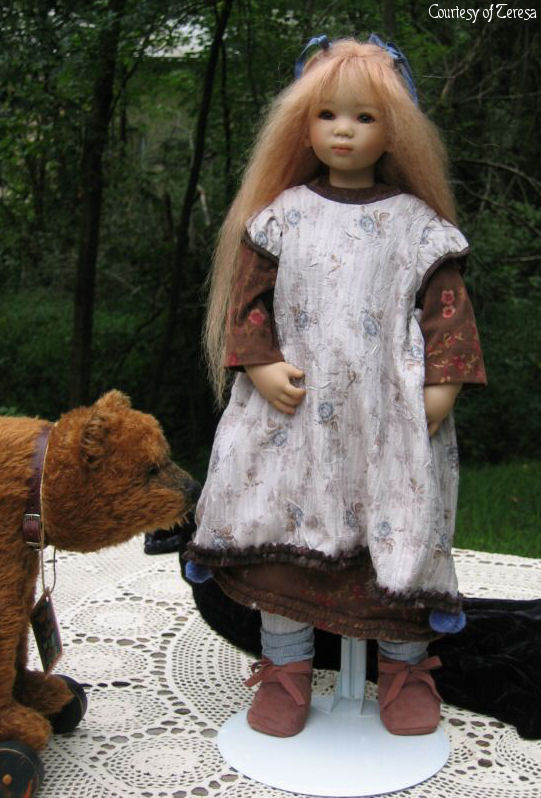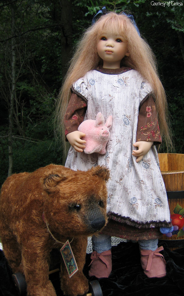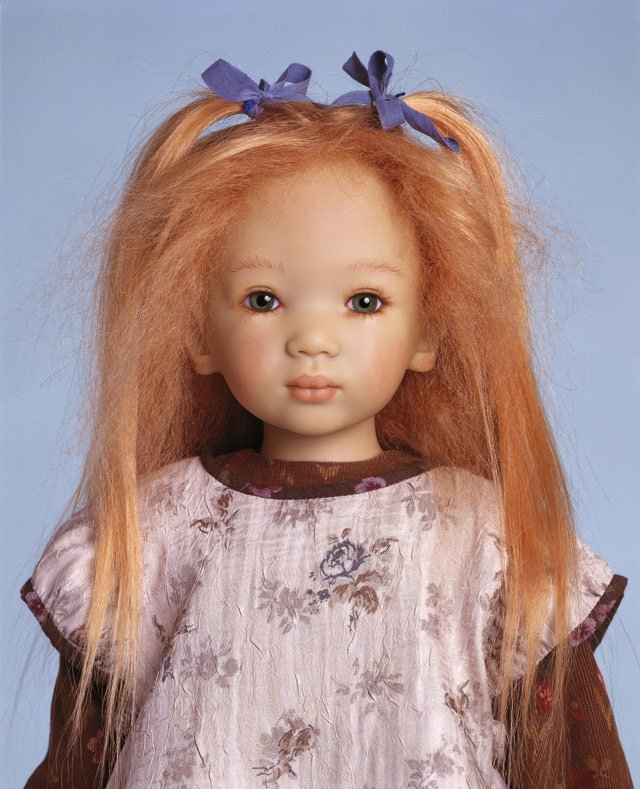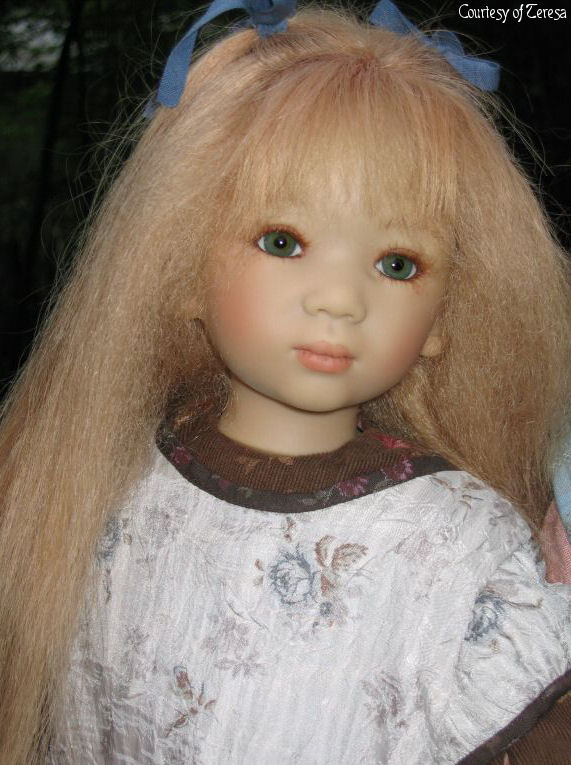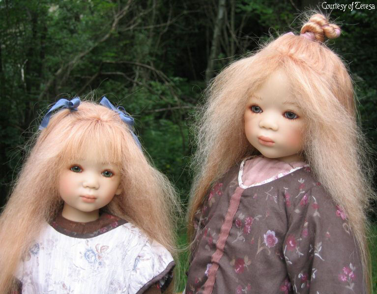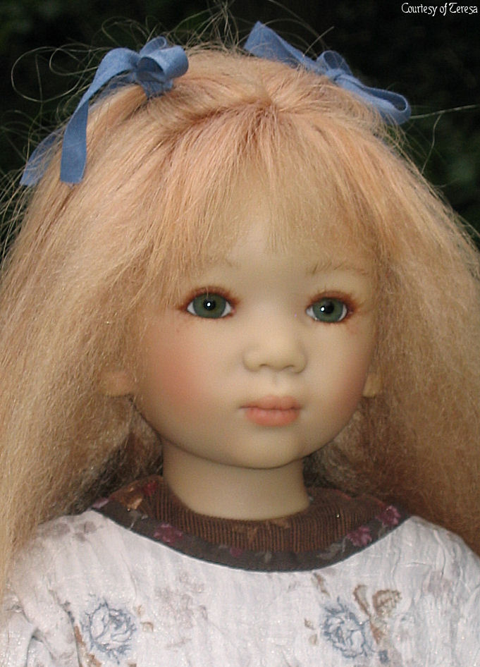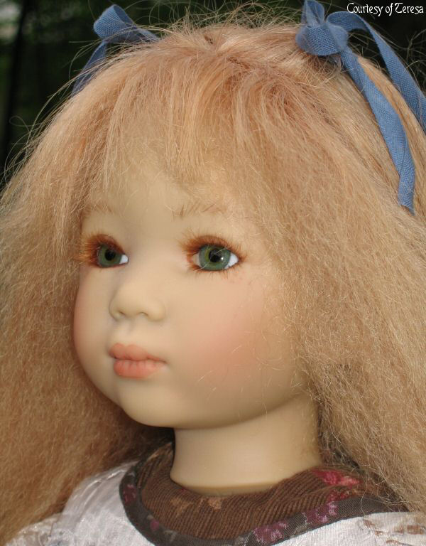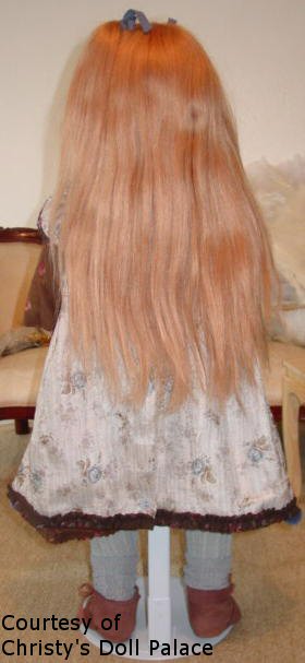 Strawberry blonde mohair and human hair, semi hand-knotted