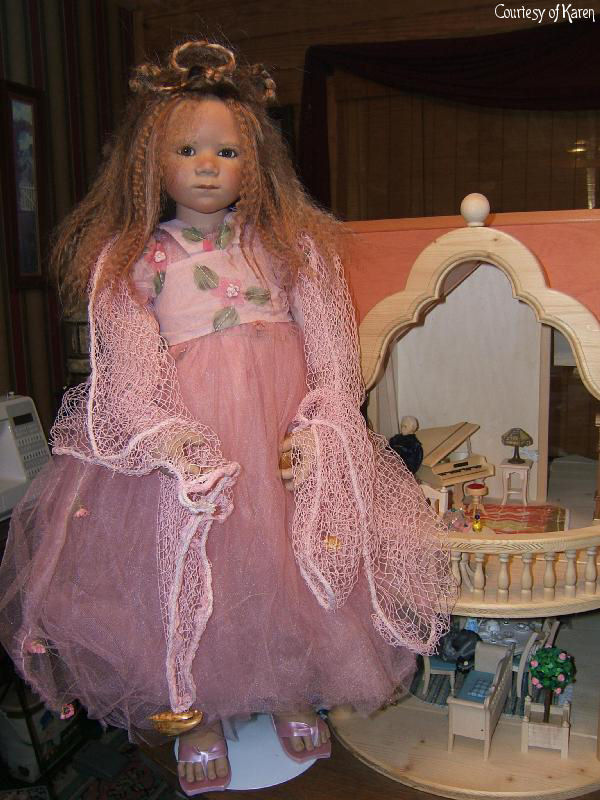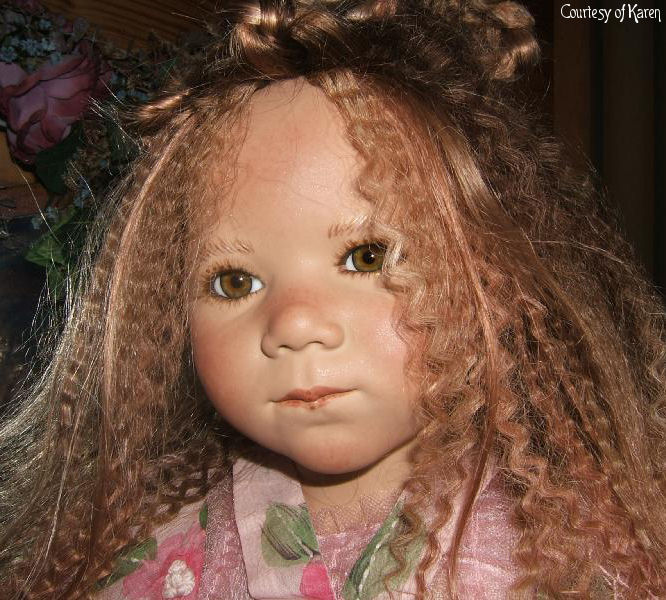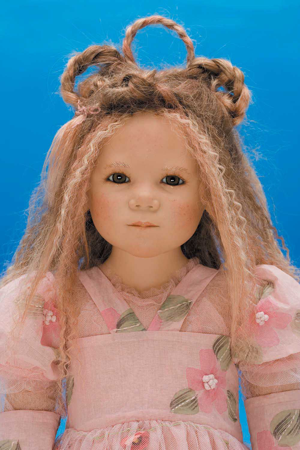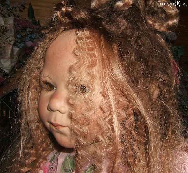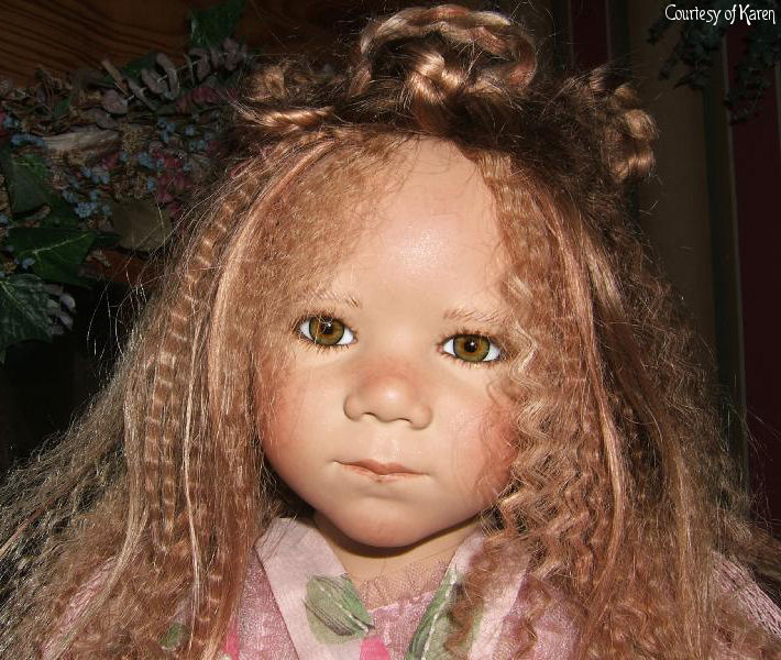 Hair: Brown human hair with blonde highlights in front and a loose braid on top of the head