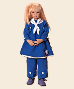 Hair: Blonde mohair using a special toupet hand-knotting technique