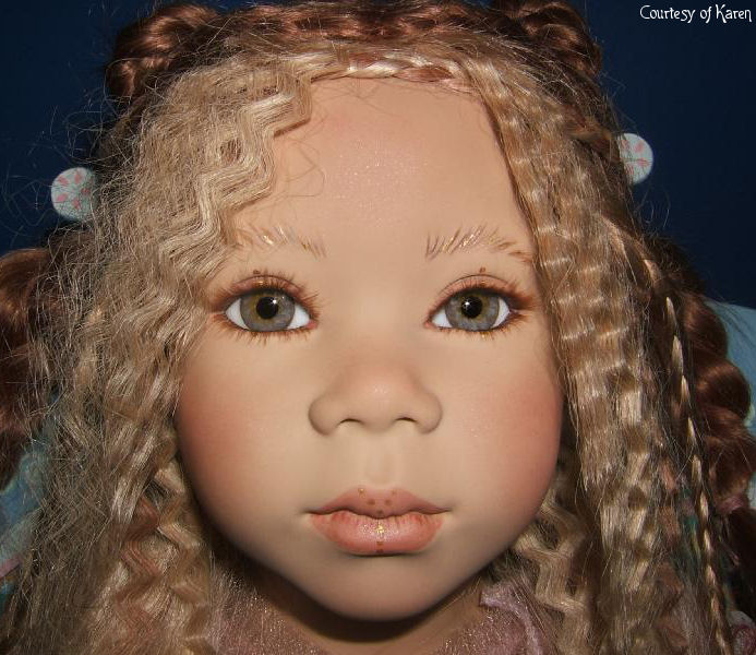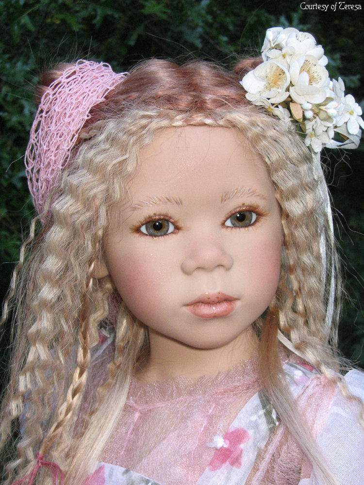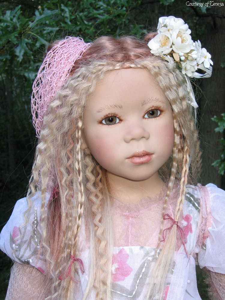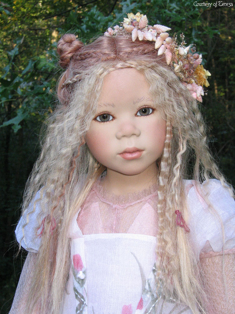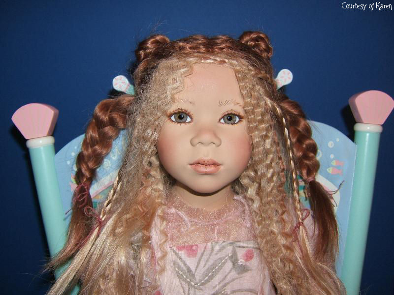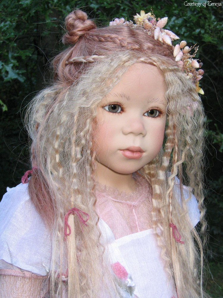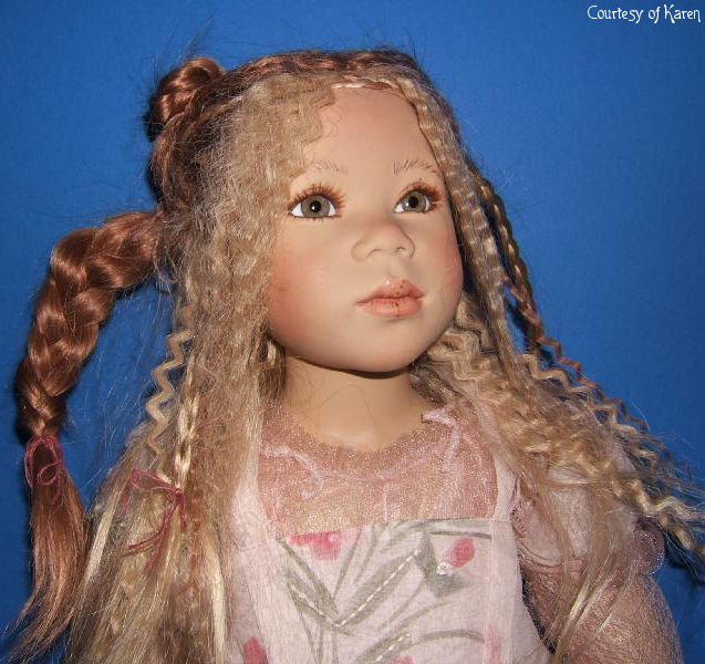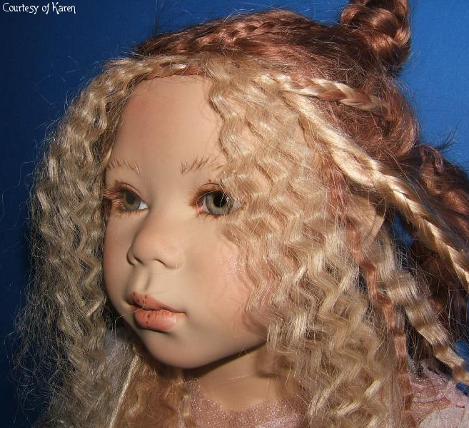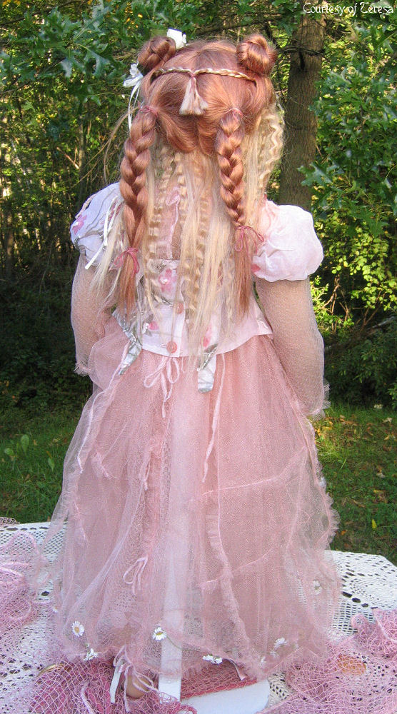Hair: Red human hair with blonde highlights in front and a loose braid around the head