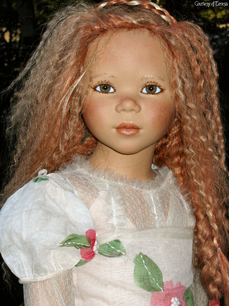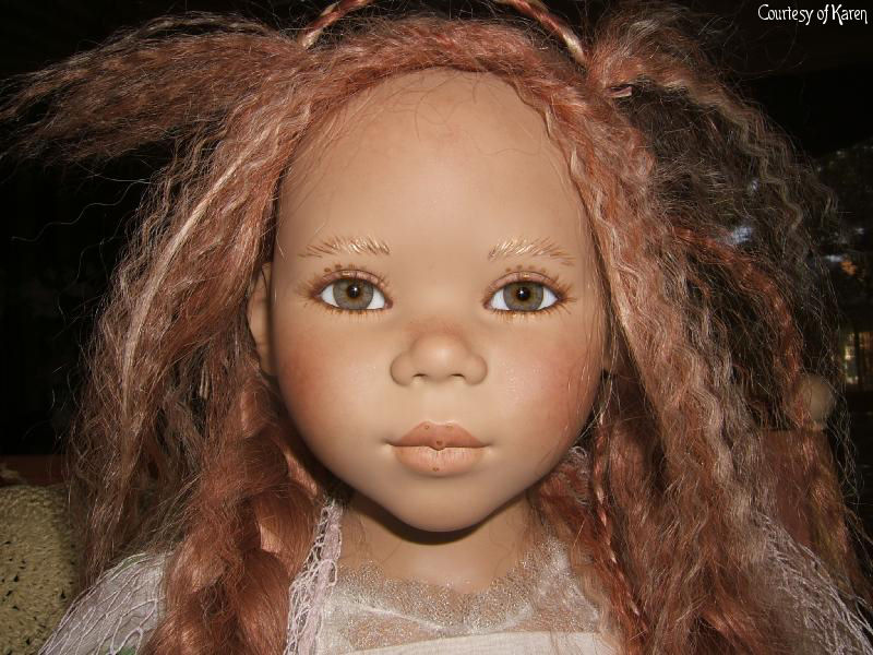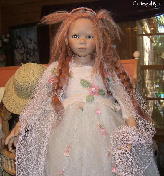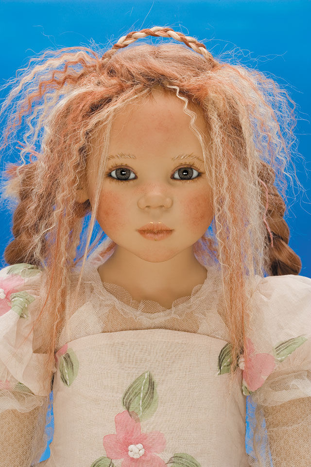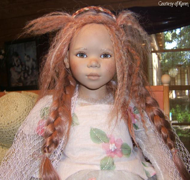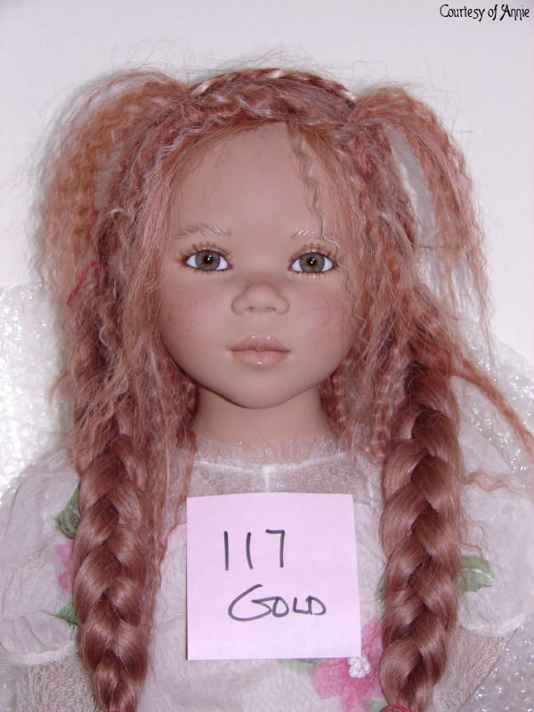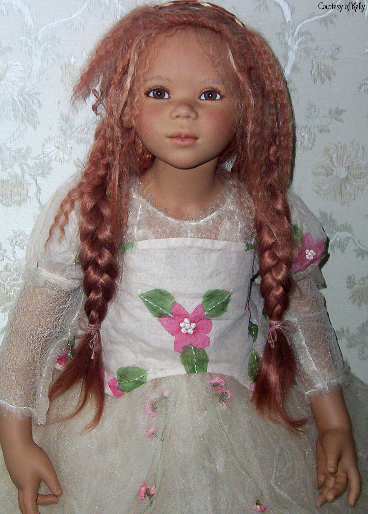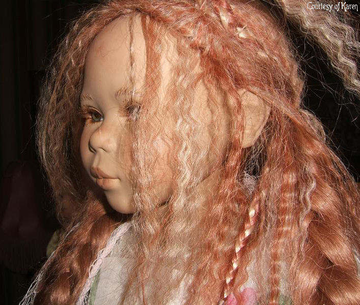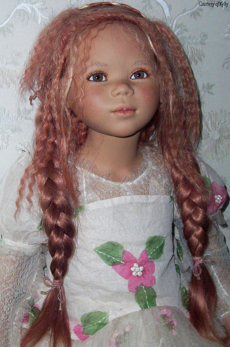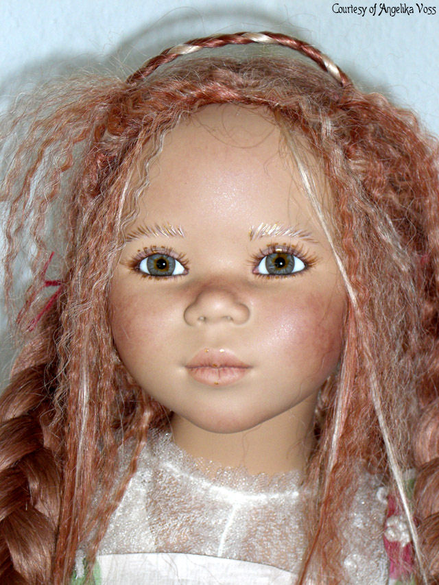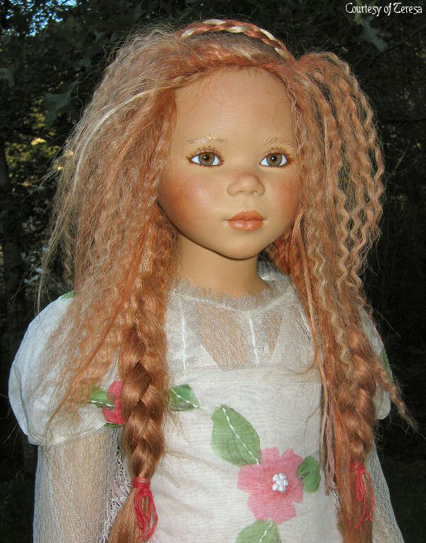 Hair: Red human hair with blonde highlights in front and a loose braid on top of the head