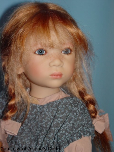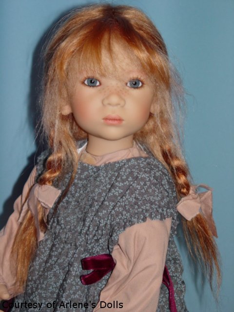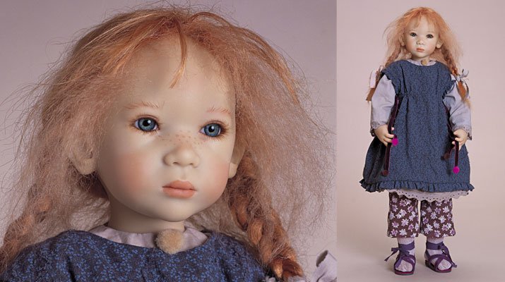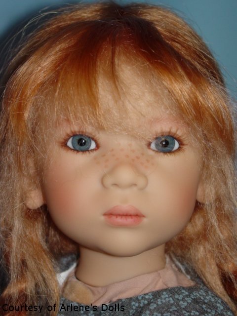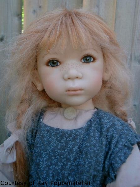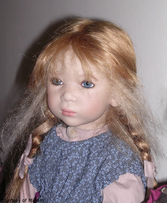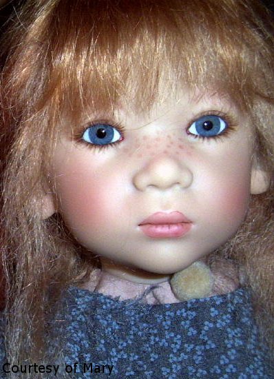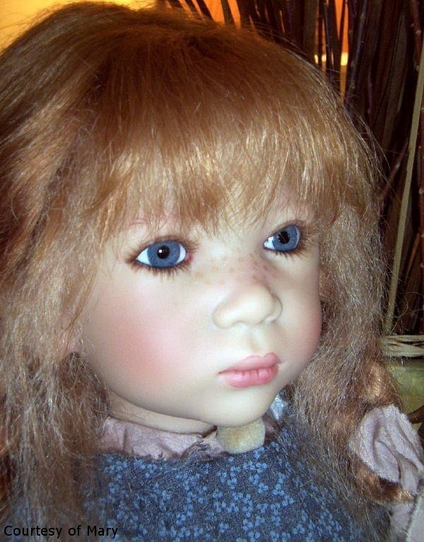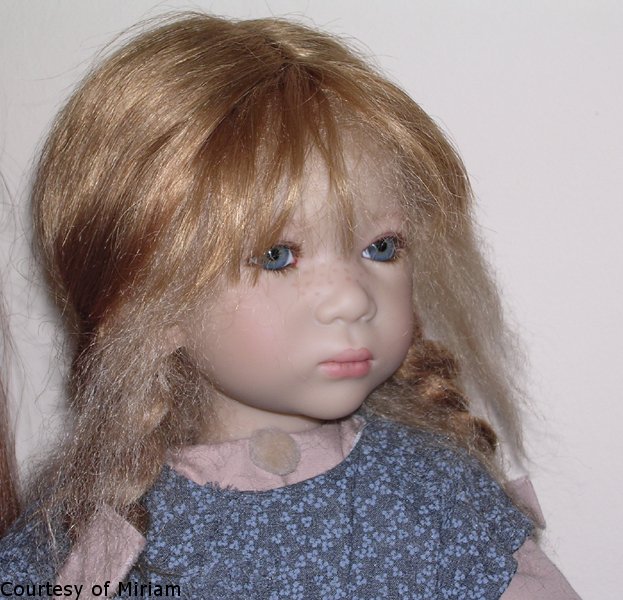 Hair: Strawberry blonde mohair and human hair, semi hand-knotted