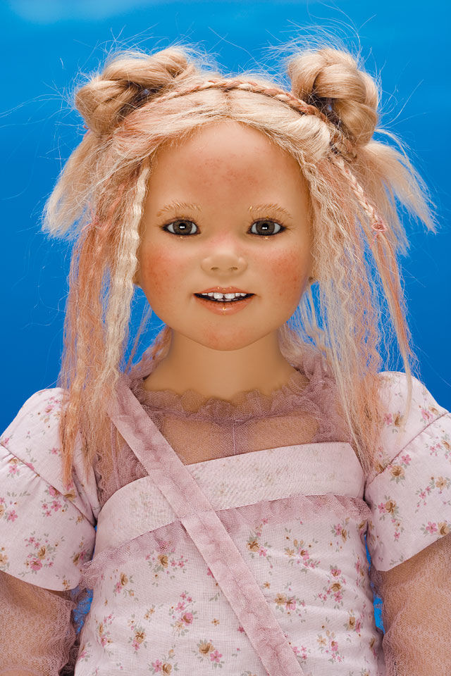 Hair: Blonde human hair with red highlights in front and a loose braid on top of the head
