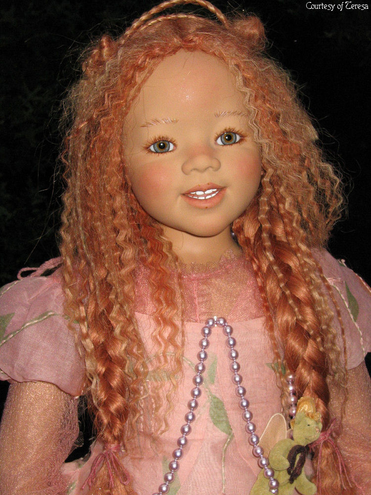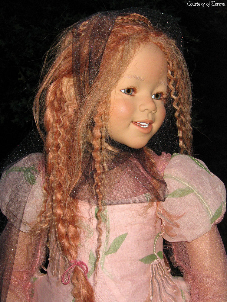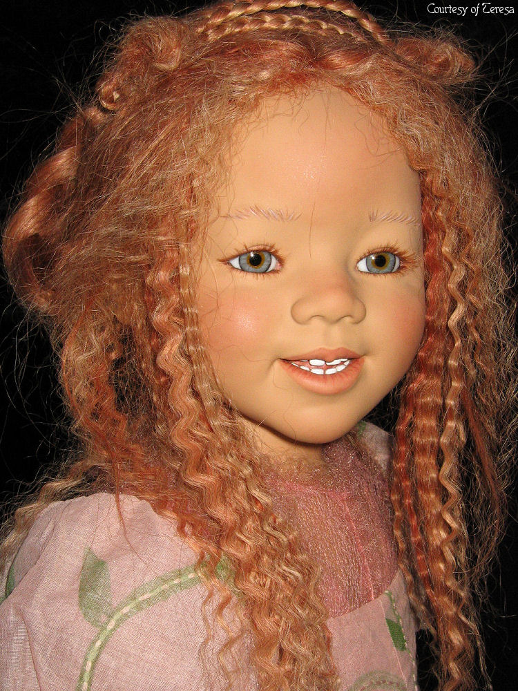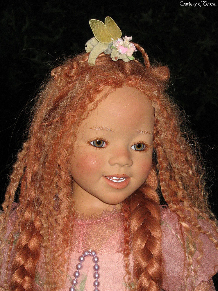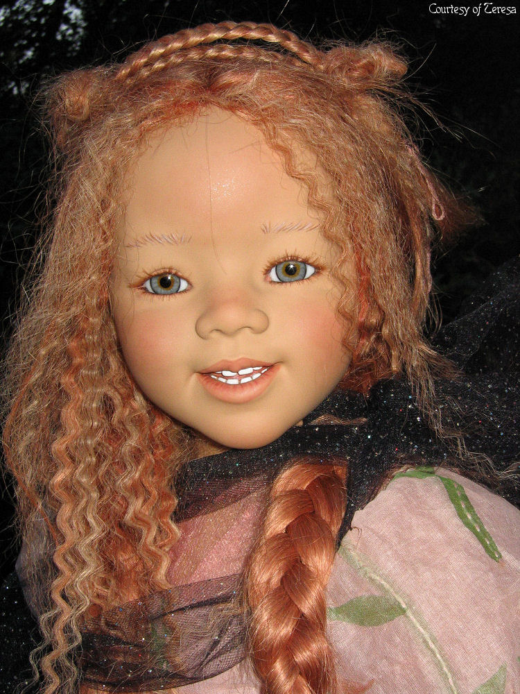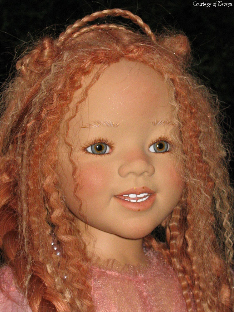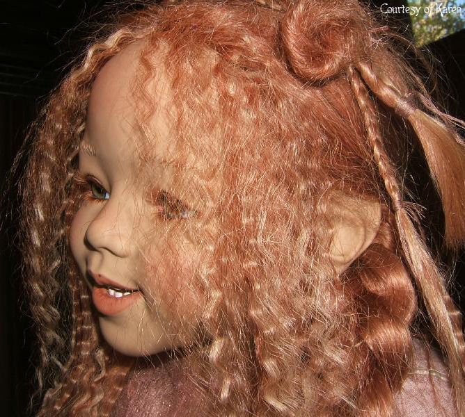 Hair: Strawberry blonde human hair with blonde highlights in front and loose braids on top of the head