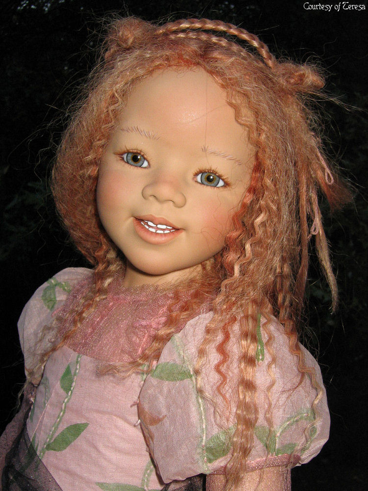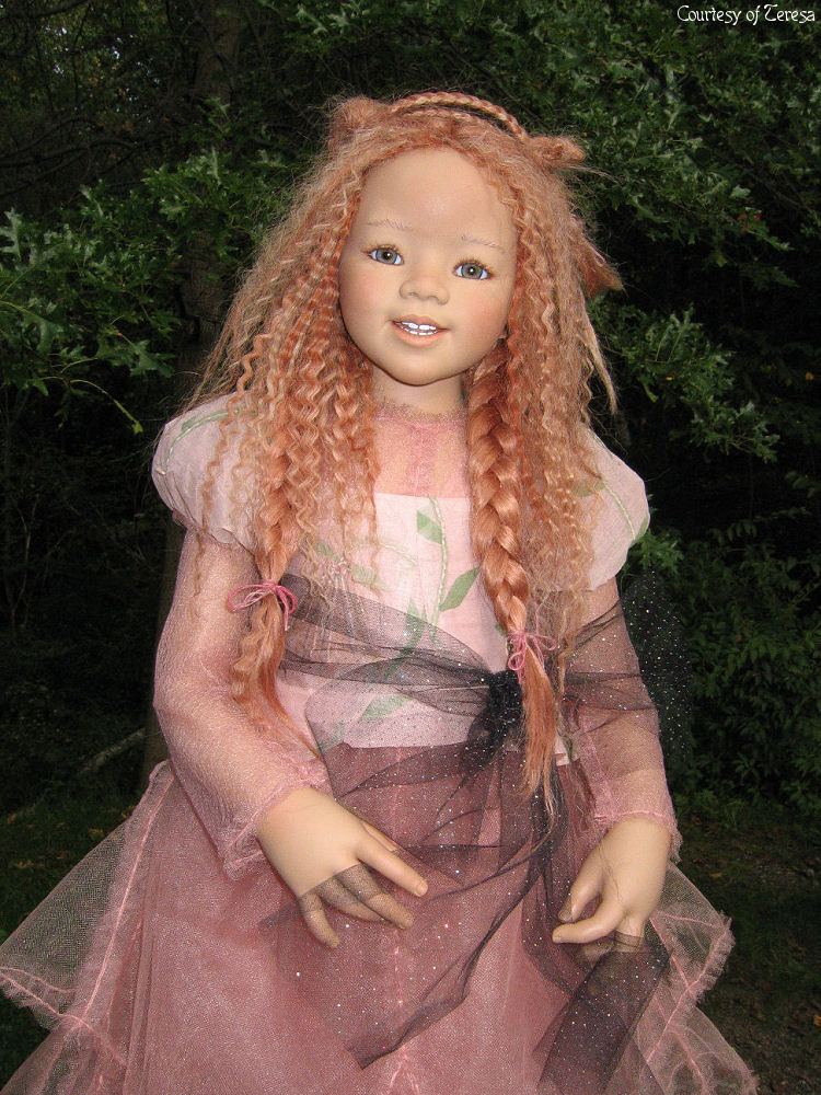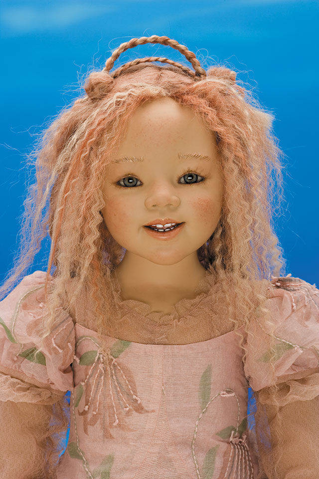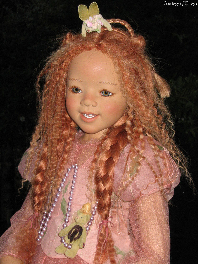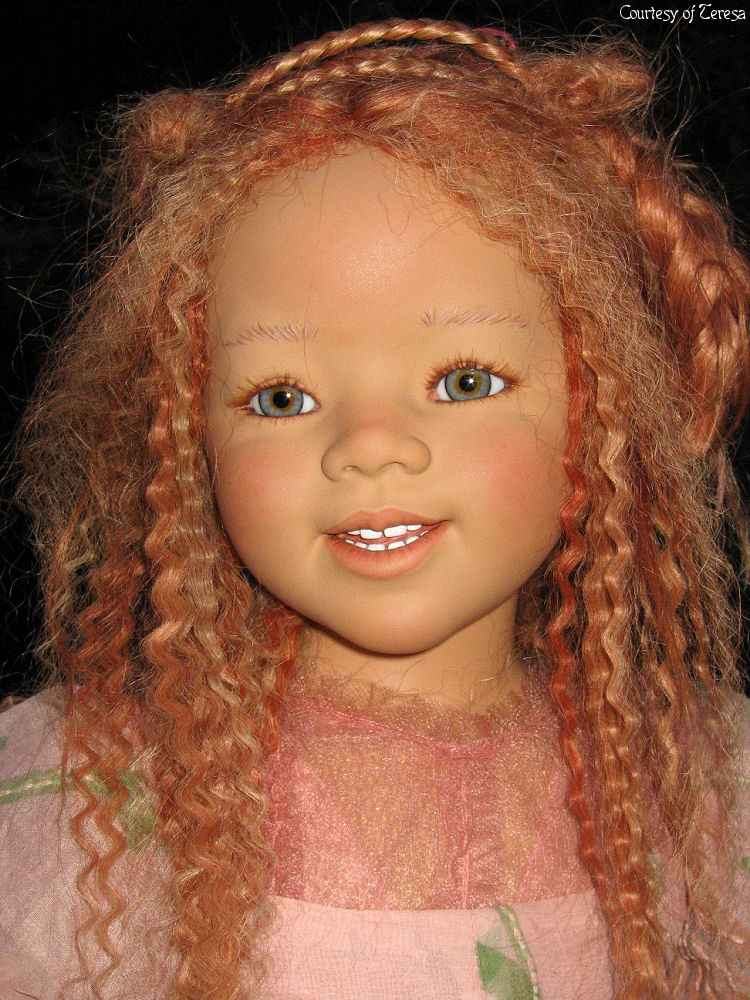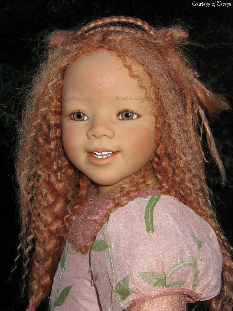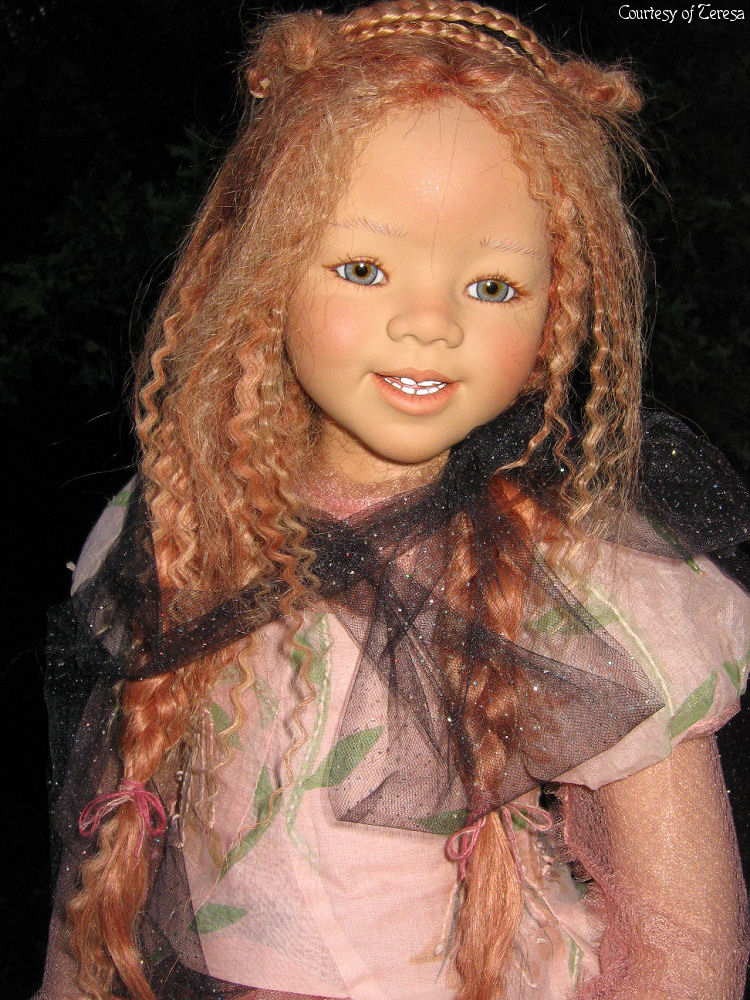 Hair: Strawberry blonde human hair with blonde highlights in front and loose braids on top of the head