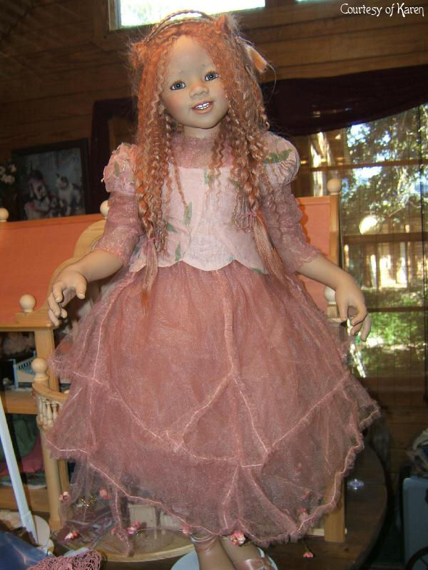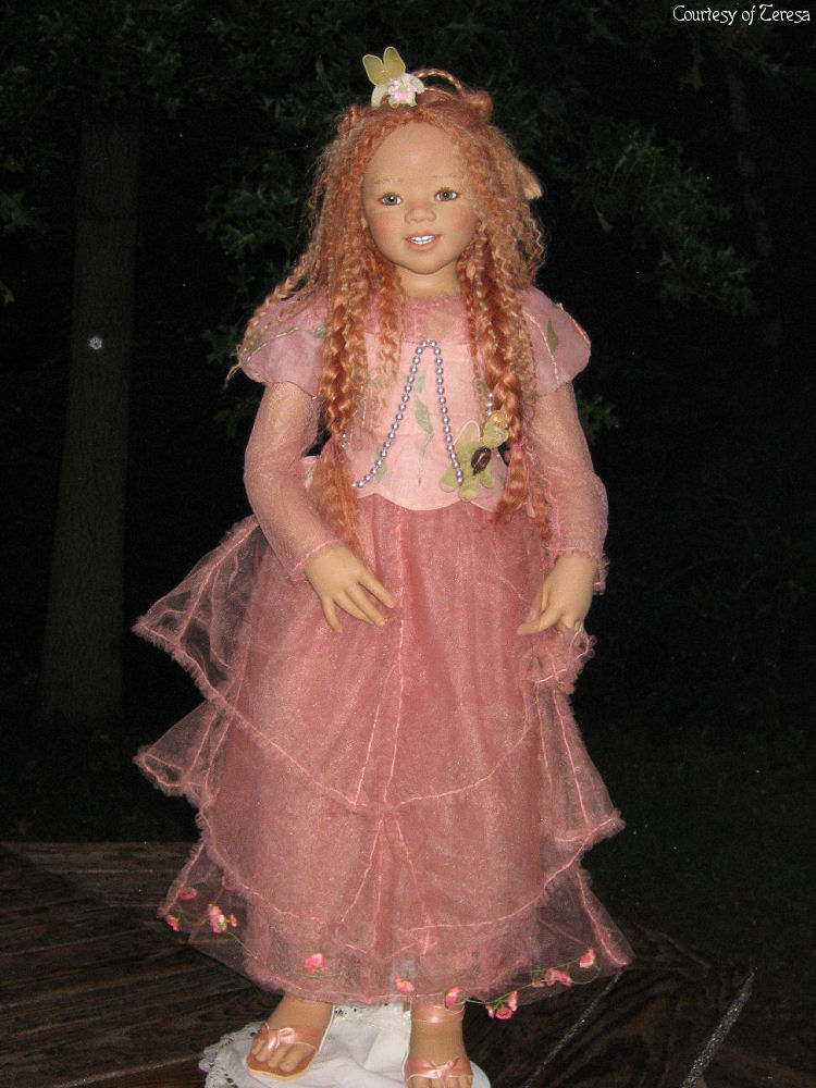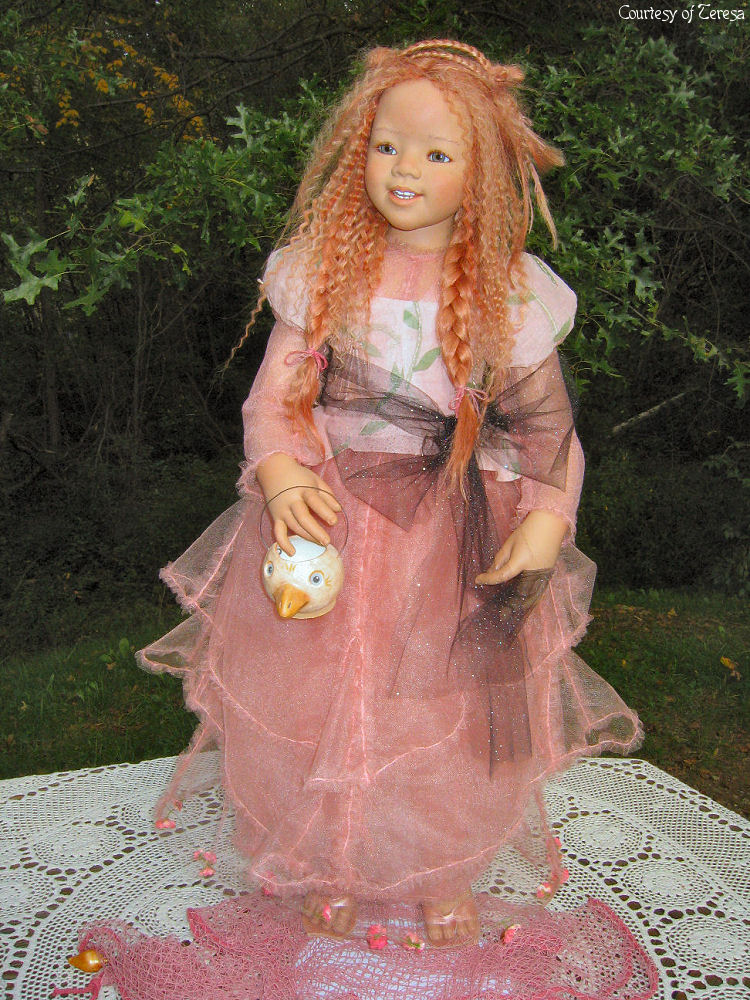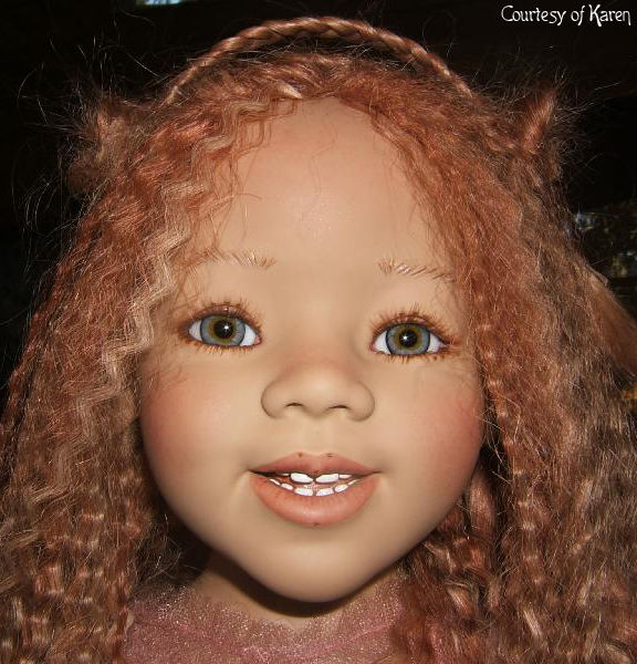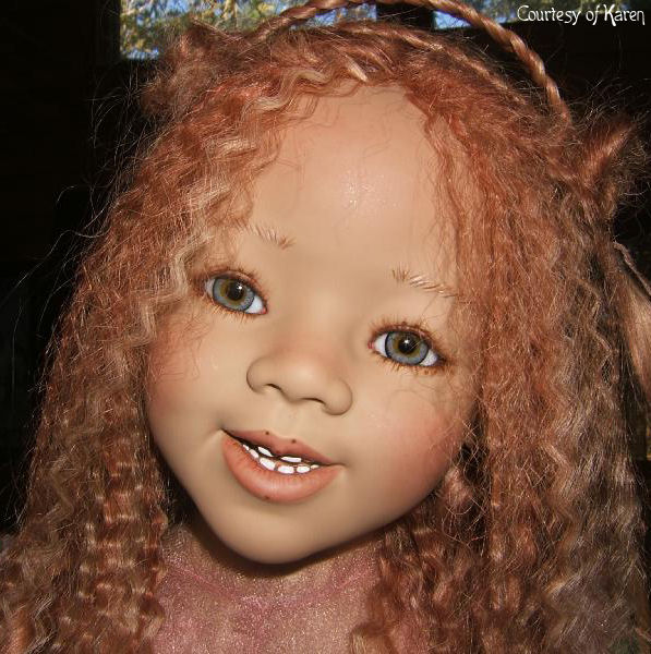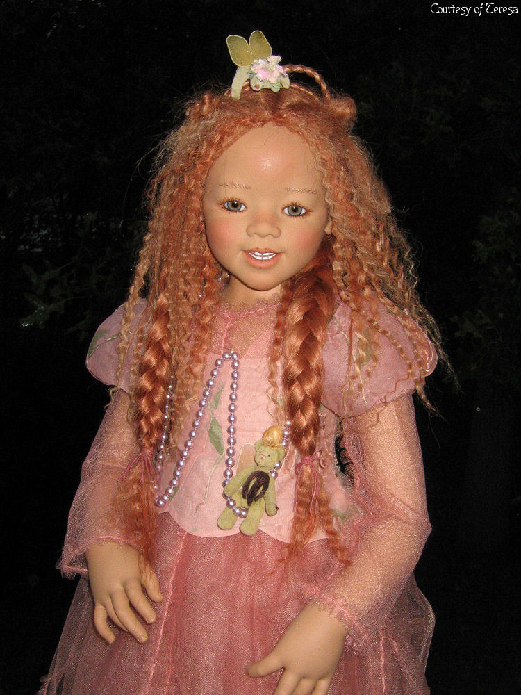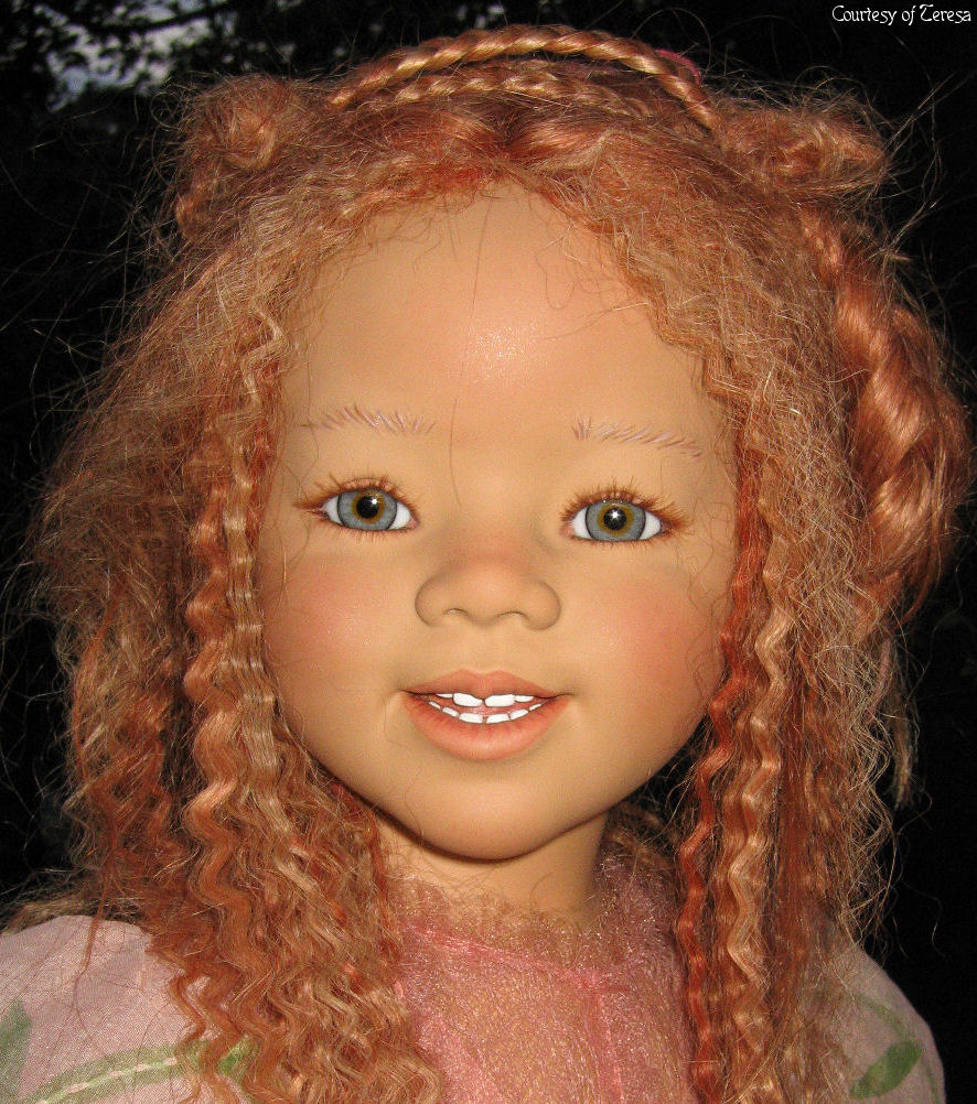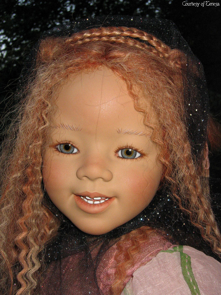 Hair: Strawberry blonde human hair with blonde highlights in front and loose braids on top of the head