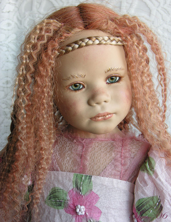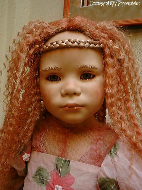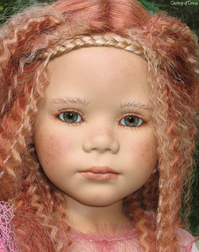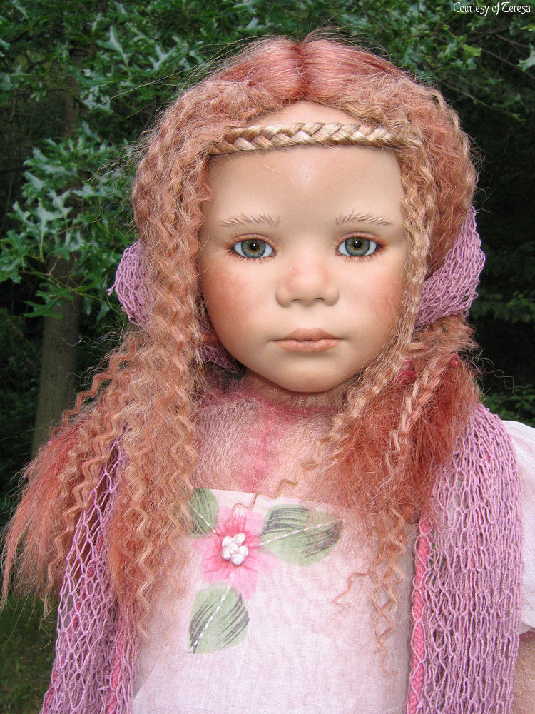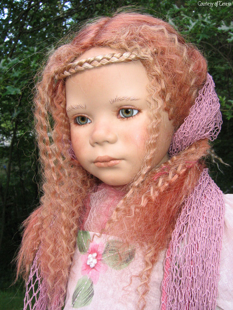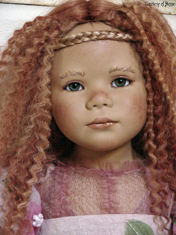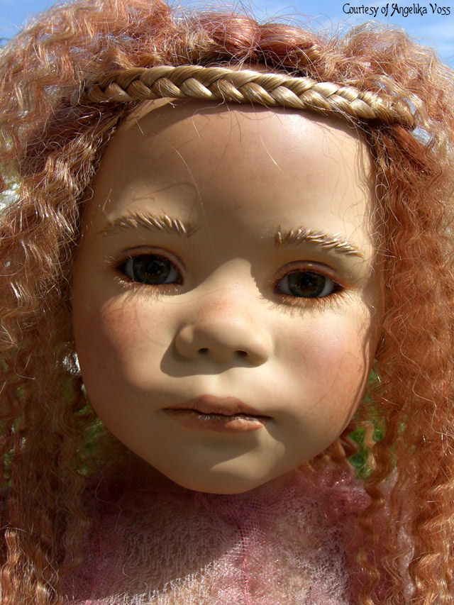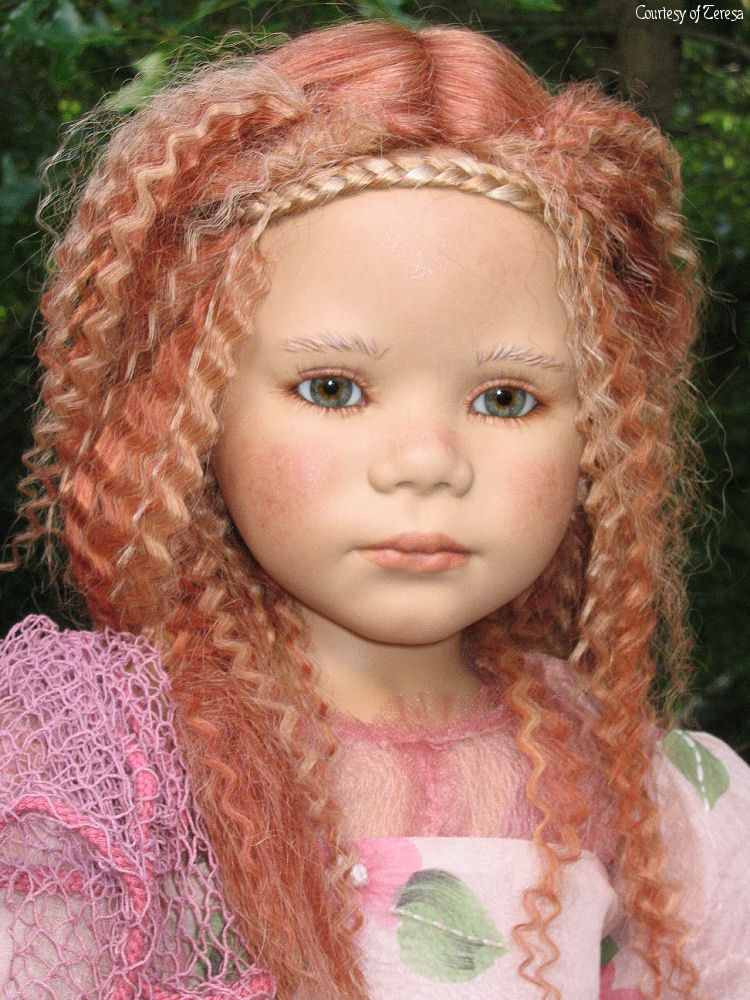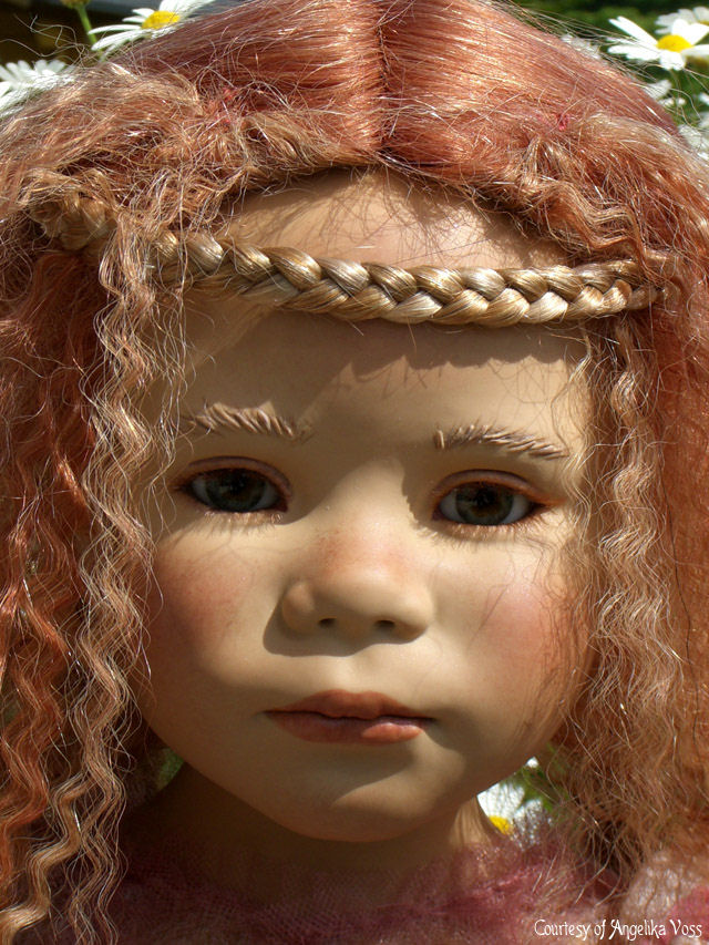 Hair: Red human hair with strawberry blonde highlights in front and a loose braid around the head