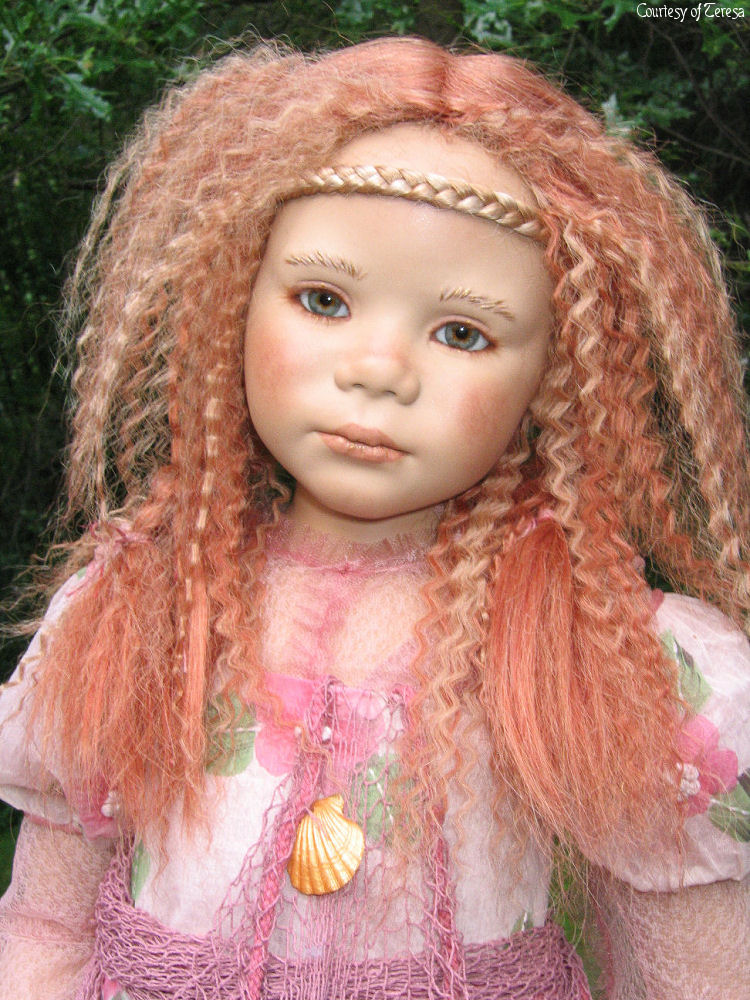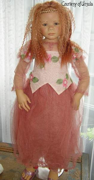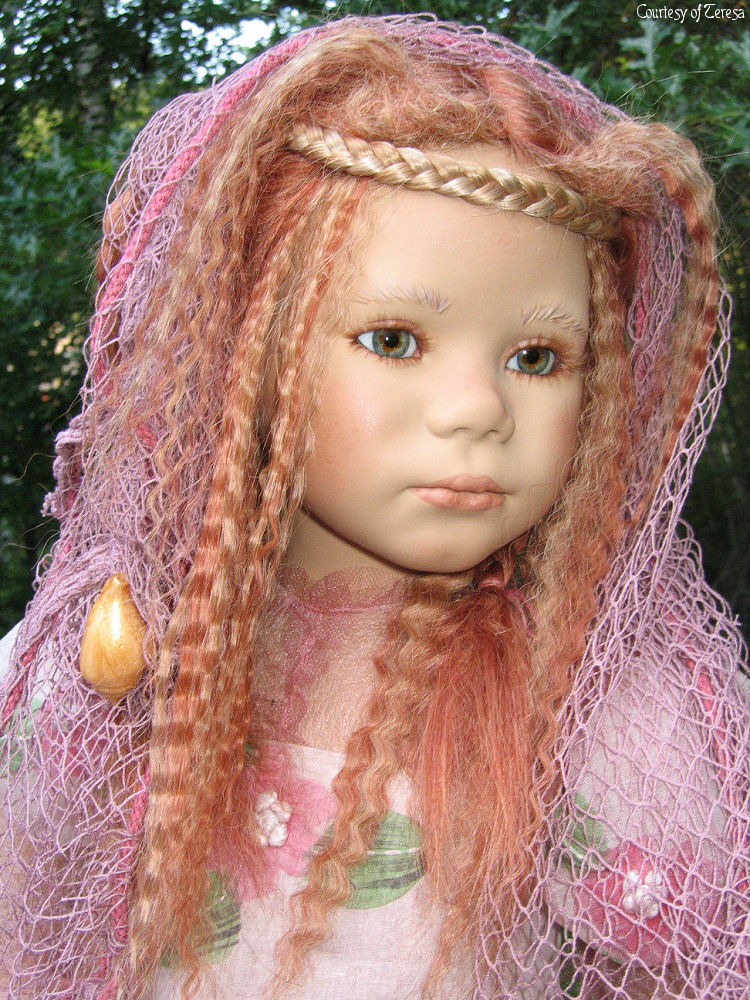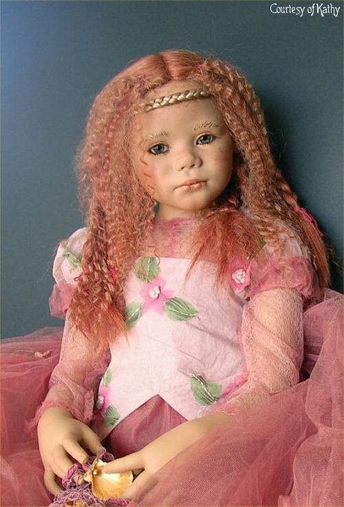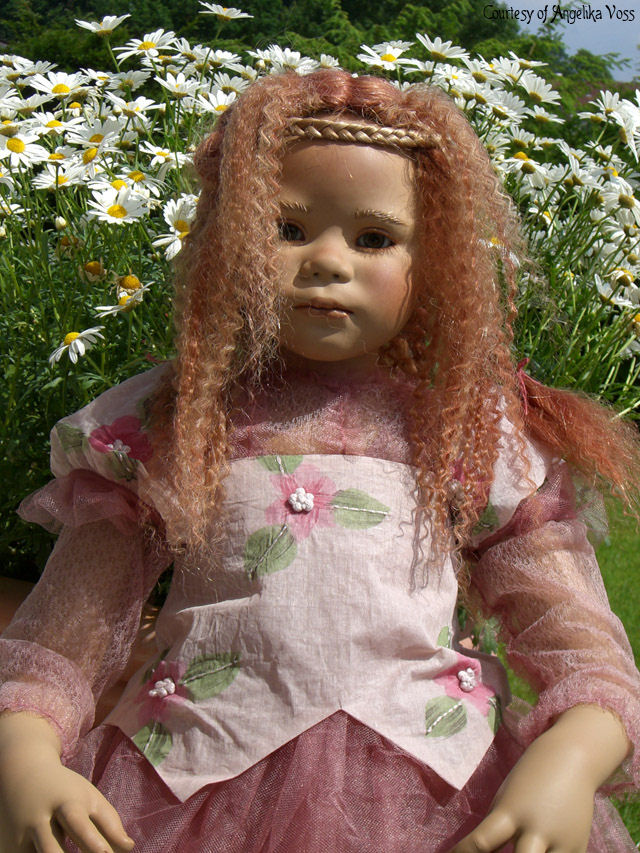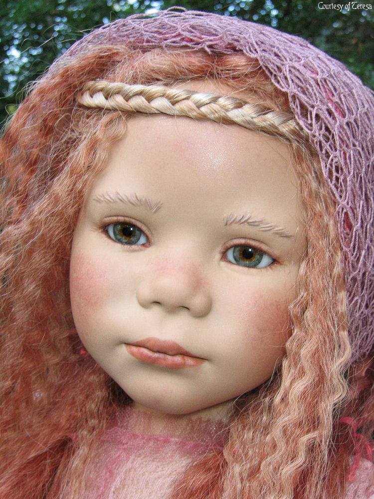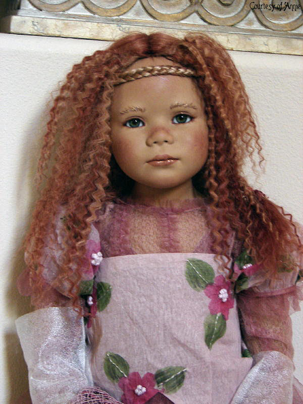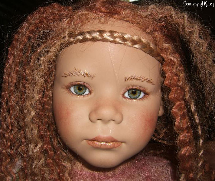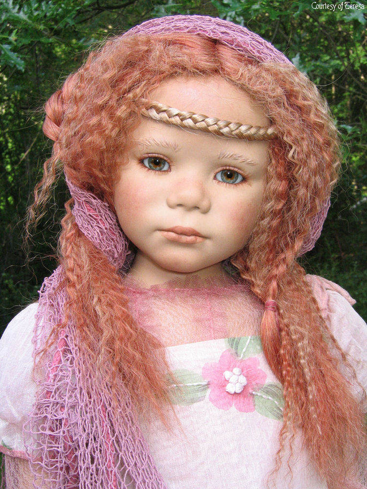 Hair: Red human hair with strawberry blonde highlights in front and a loose braid around the head