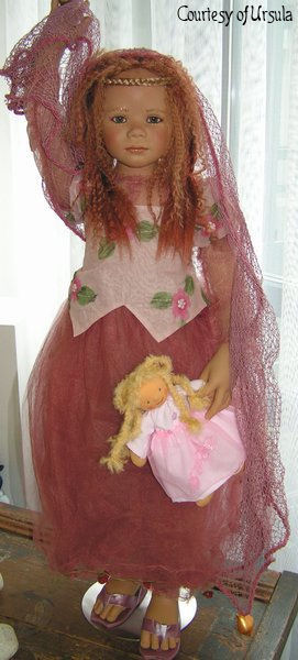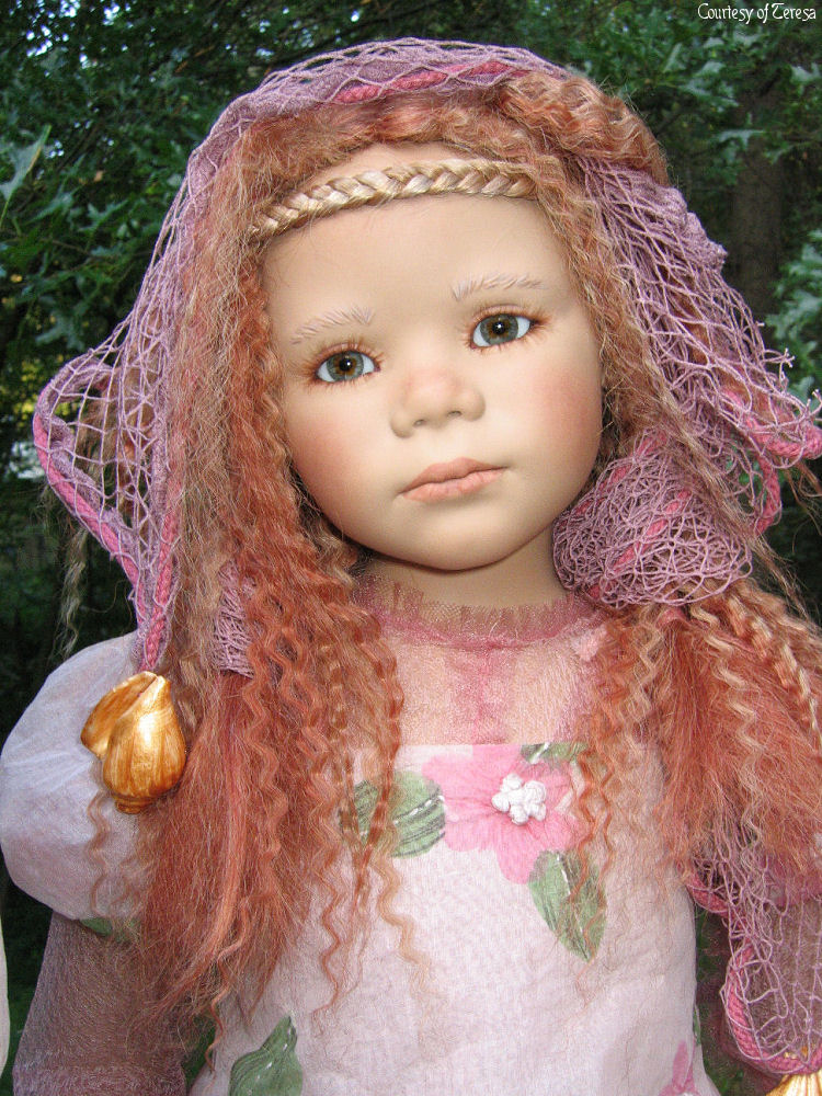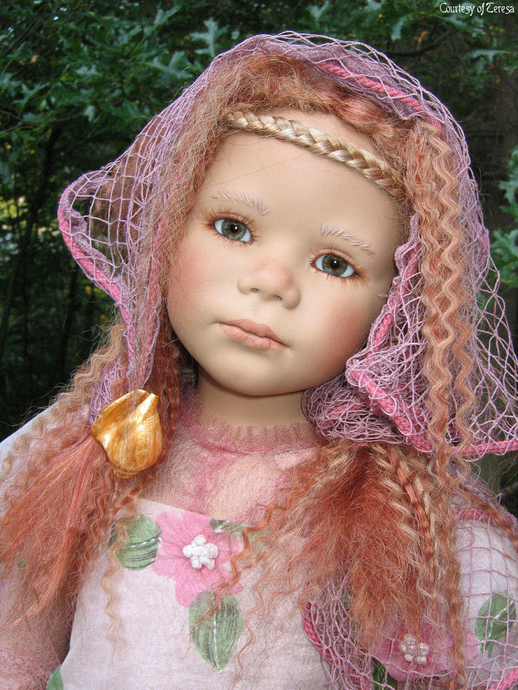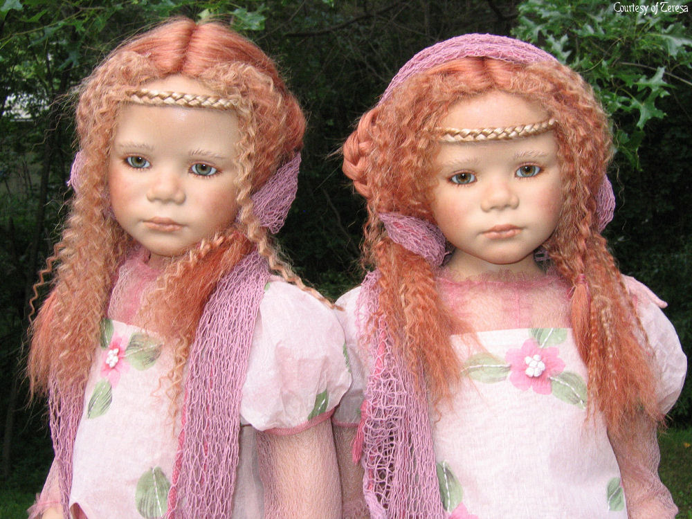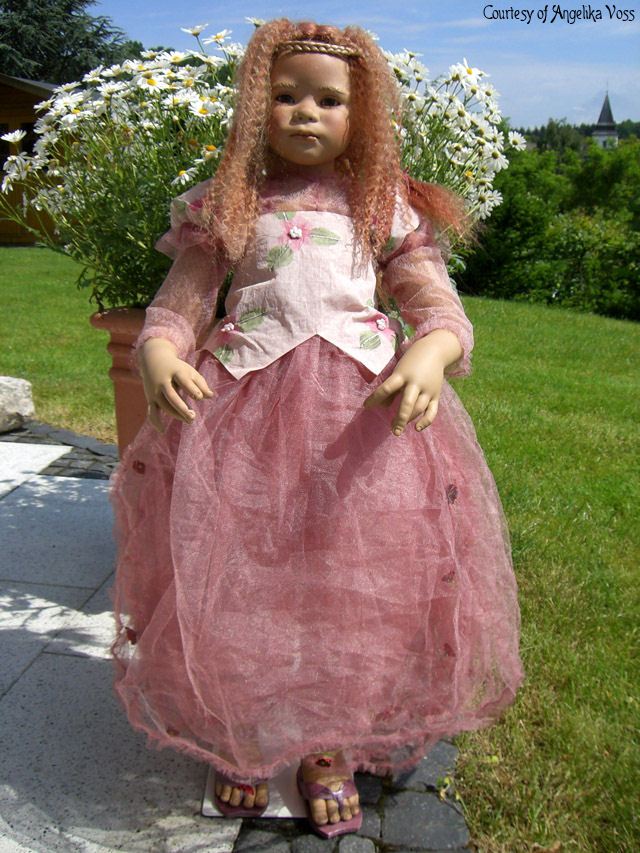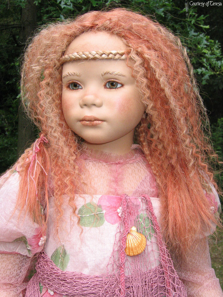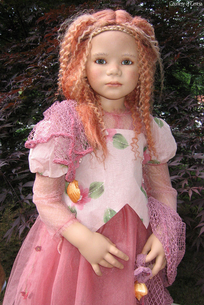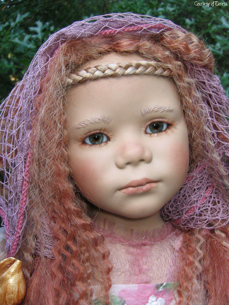 Hair: Red human hair with strawberry blonde highlights in front and a loose braid around the head