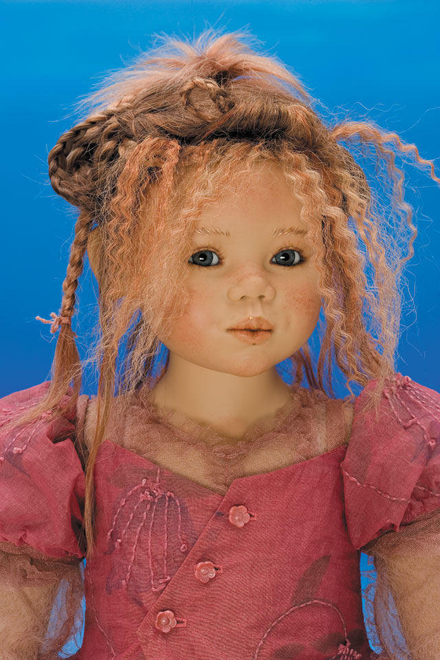Hair: Reddish brown human hair with blonde highlights in front and loose braids on top of the head