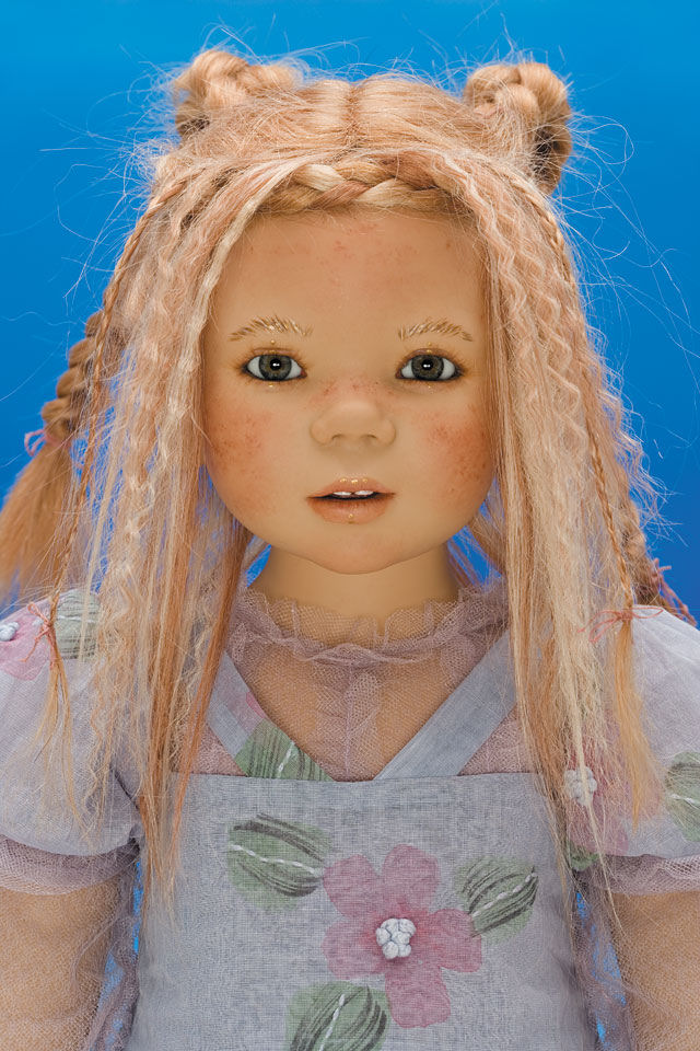 Hair: Blonde human hair with strawberry blonde highlights in front and a loose braid around the head
