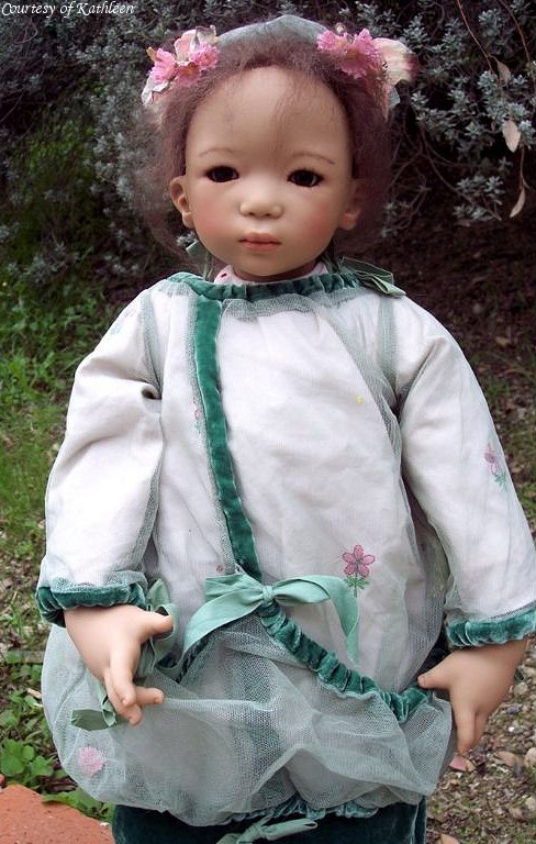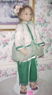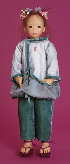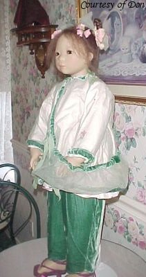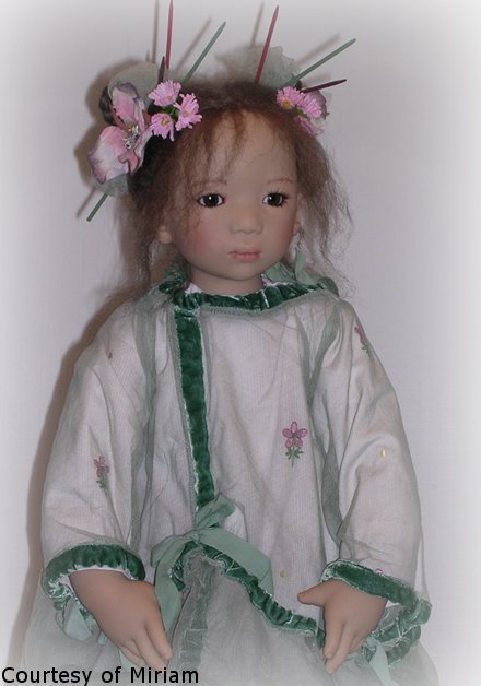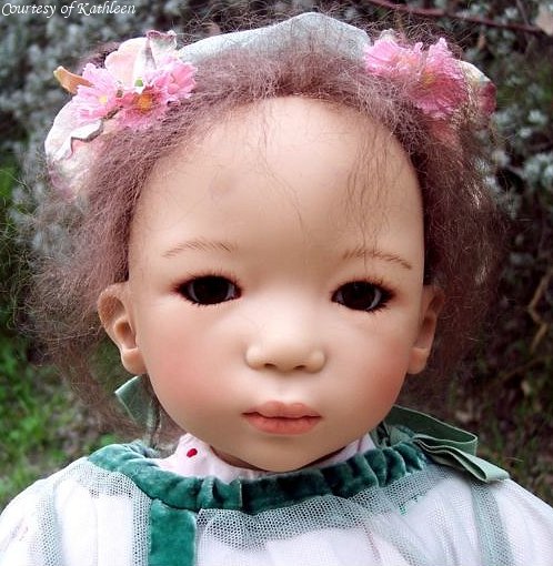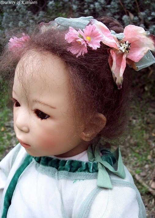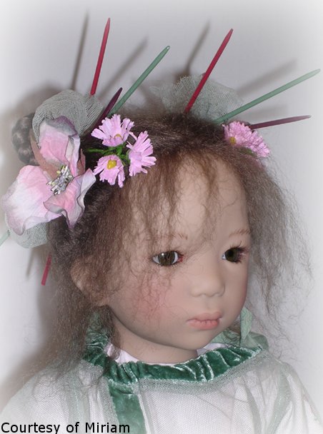 Hair: Black mohair using a special toupet hand-knotting technique